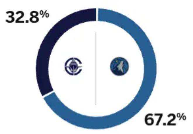 賽季至今,快船僅僅取得6勝17負的戰(zhàn)績,排名西部倒數(shù)第三。賽前,美媒ESPN對本場比賽進行了預(yù)測,快船勝率僅有32.8%,而森林狼勝率則高達67.2%,差距非常明顯。